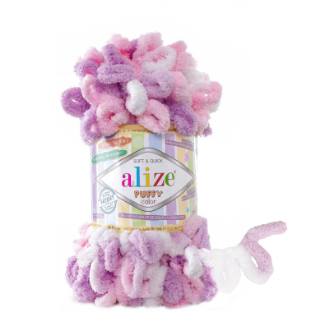 חוט סריגה פאפי Alize Puffy Color – חוט לולאות פופי קטיפתי בצבעים מתחלפים, לסריגה קלה וללא מסרגות