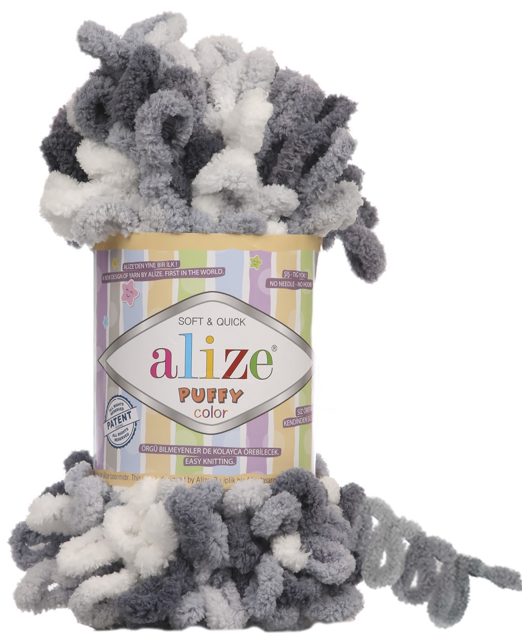 חוט סריגה פאפי Alize Puffy – חוט לולאות פופי קטיפתי בצבעים מתחלפים, לסריגה קלה וללא מסרגות
