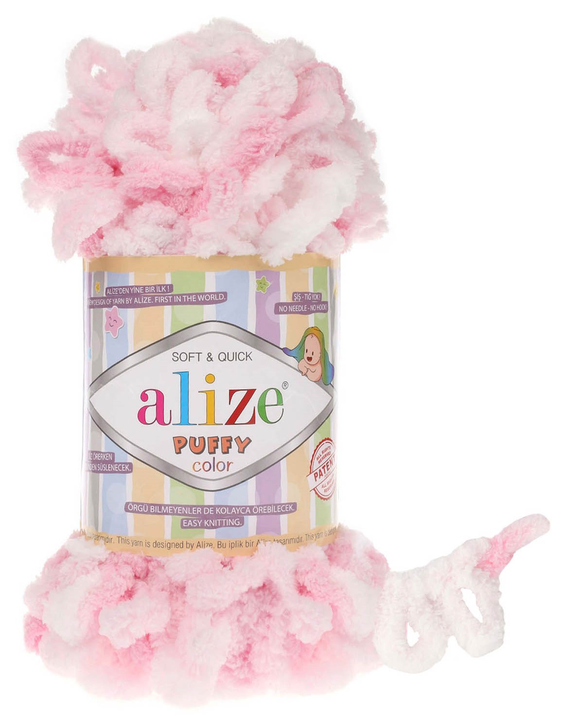 חוט הסריגה Alize Puffy הוא חוט איכותי וקטיפתי בעל לולאות מובנות, המאפשרות סריגה קלה במיוחד – ללא צורך במסרגות או מסרגה אחת! פשוט השחילו לולאה אחת בתוך השנייה וצרו יצירות רכות ומחממות תוך זמן קצר.
