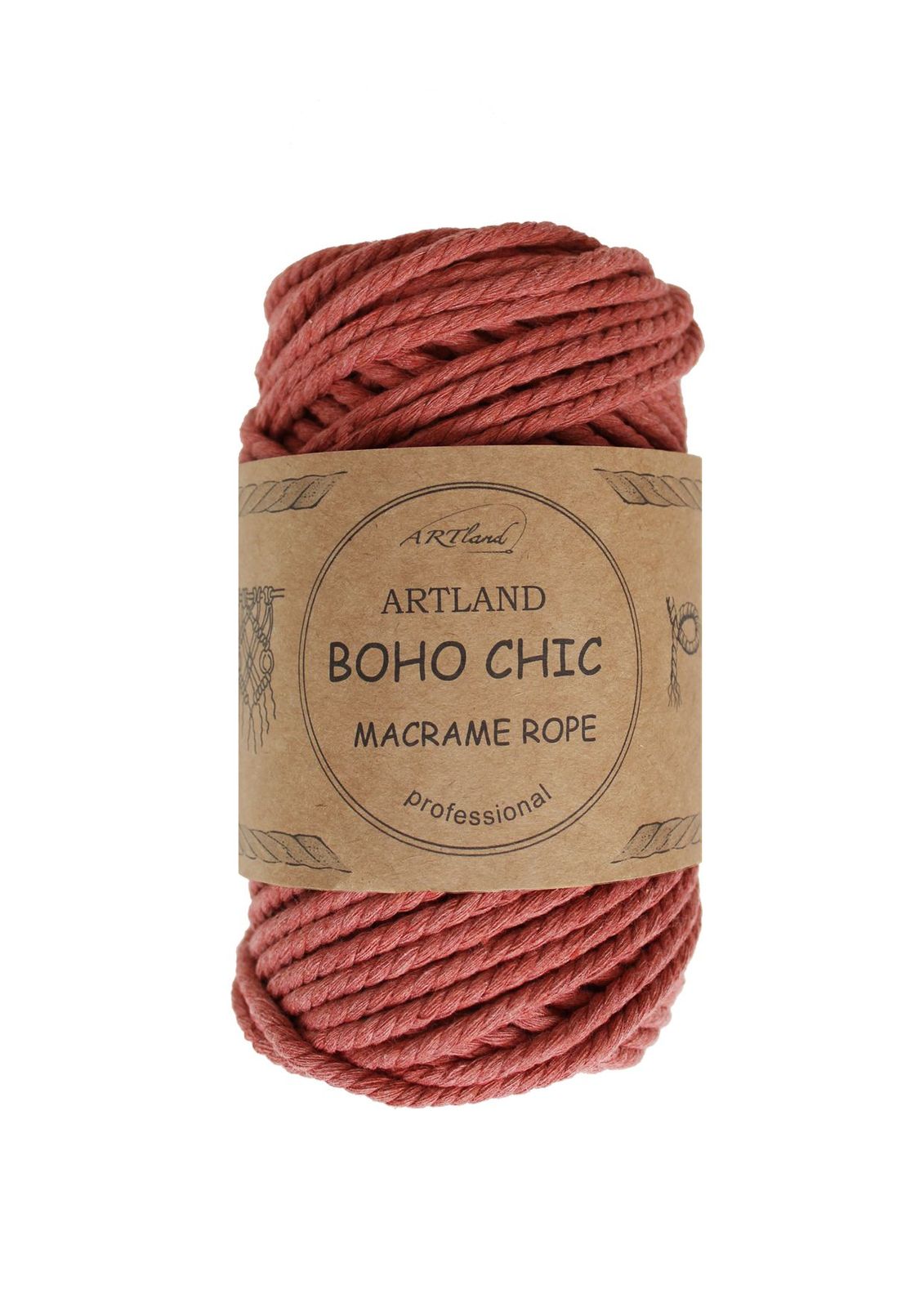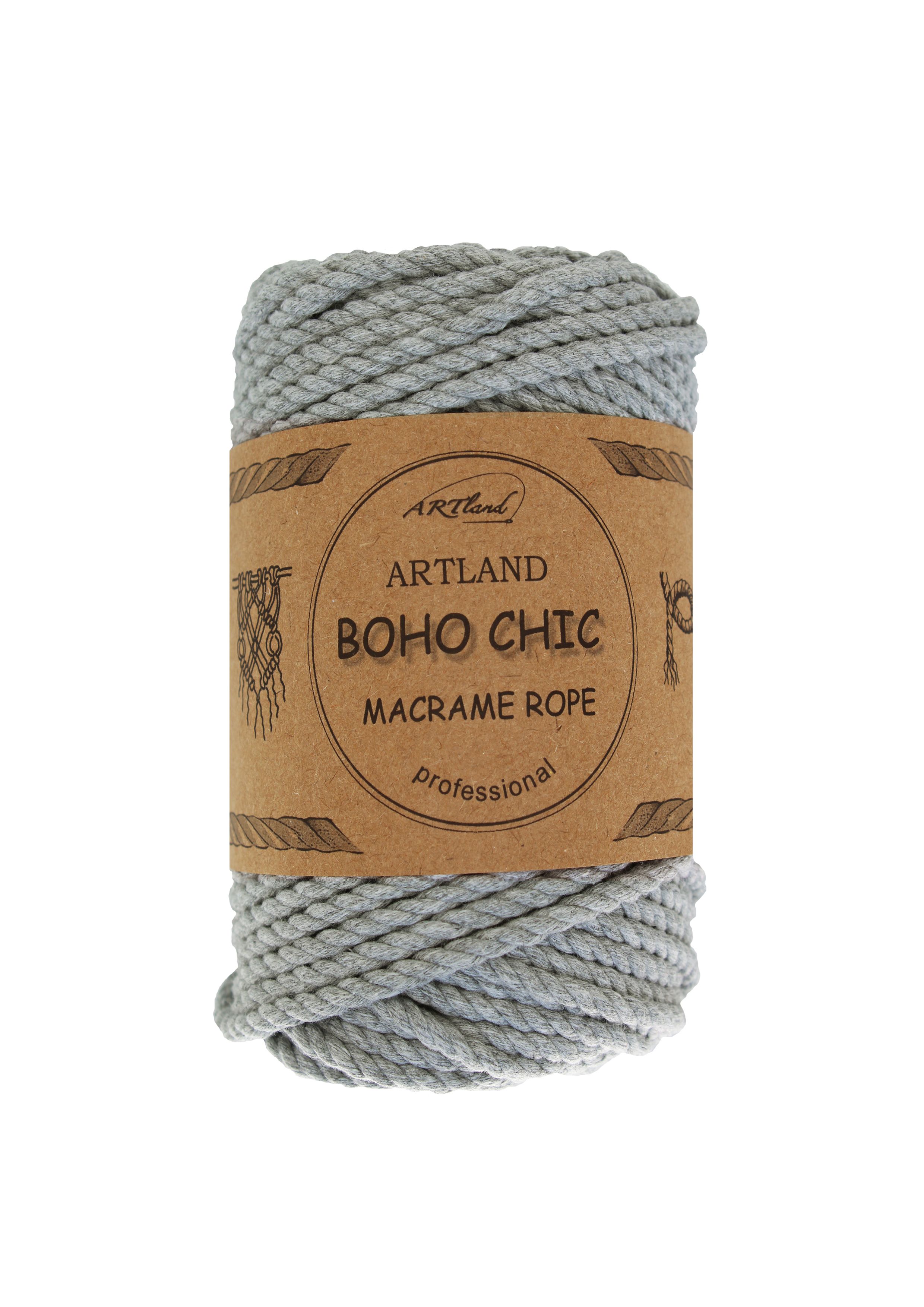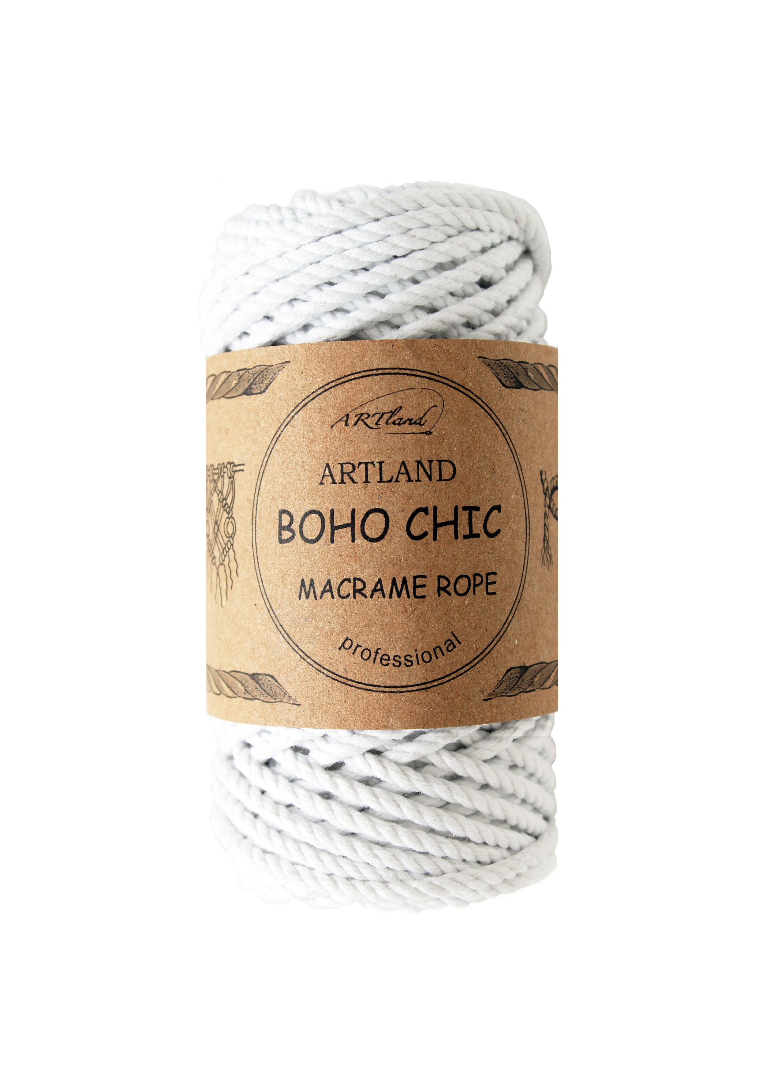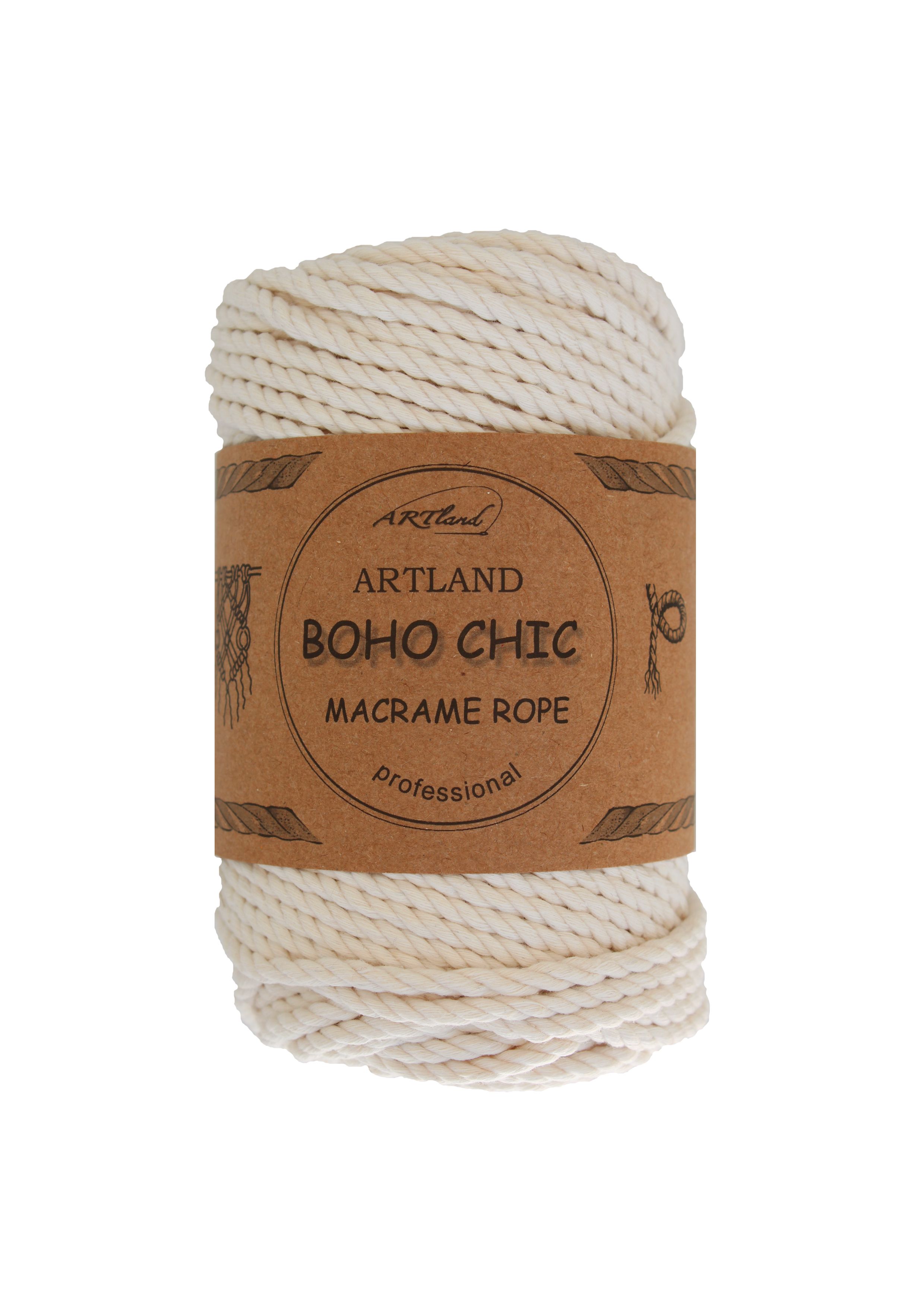 חוט מקרמה בוהו שיק BOHO CHIC של ארטלנד באיכות פרימיום ליצירה, כותנה, 4 מ"מ, 3 גידים , 250 גר
