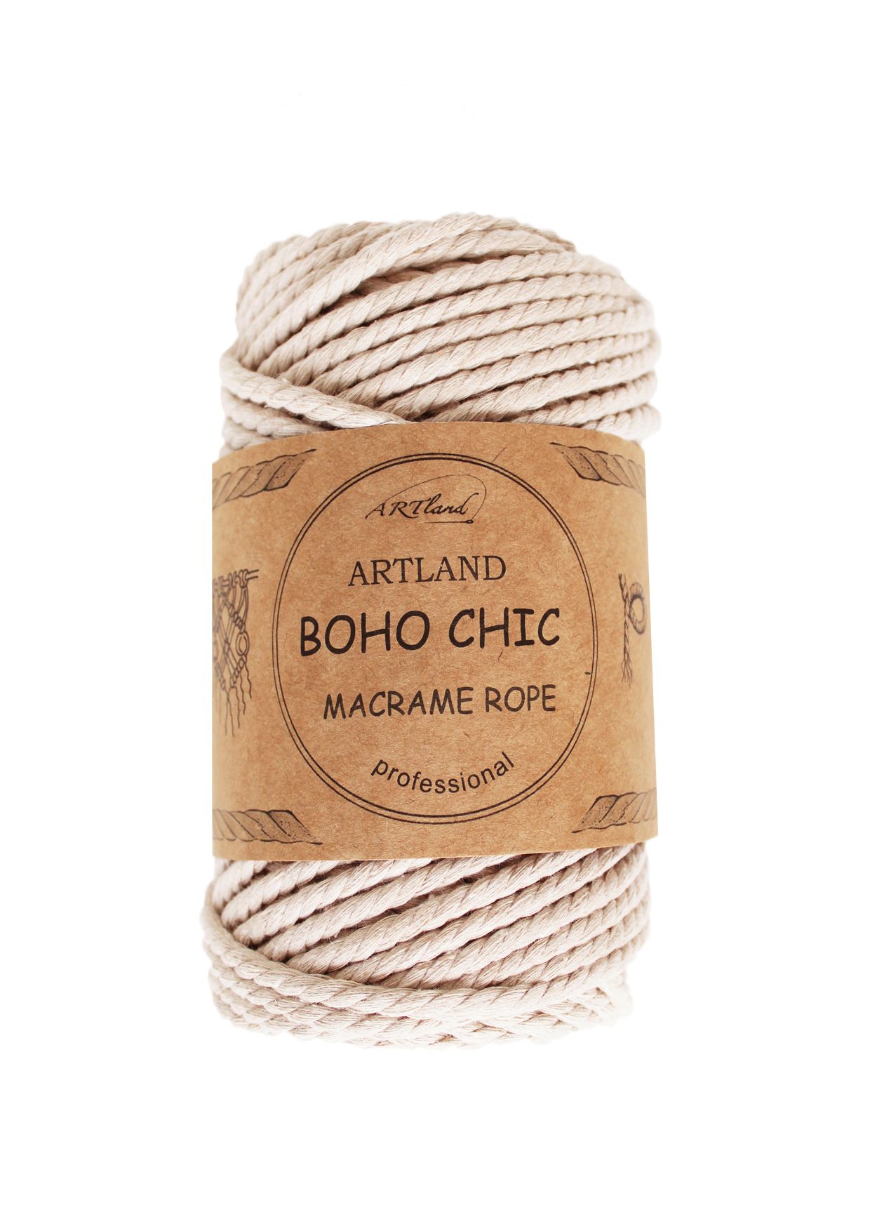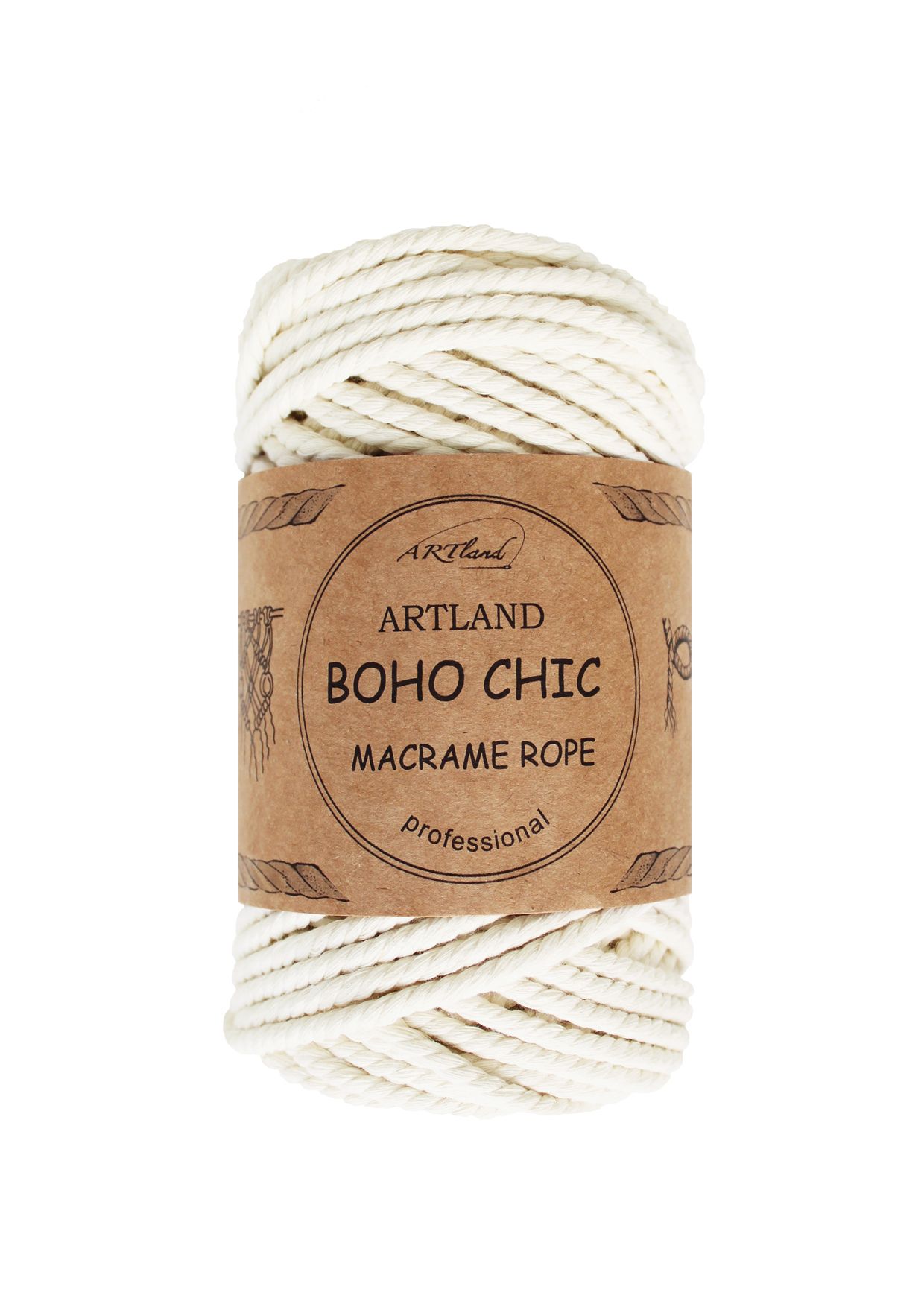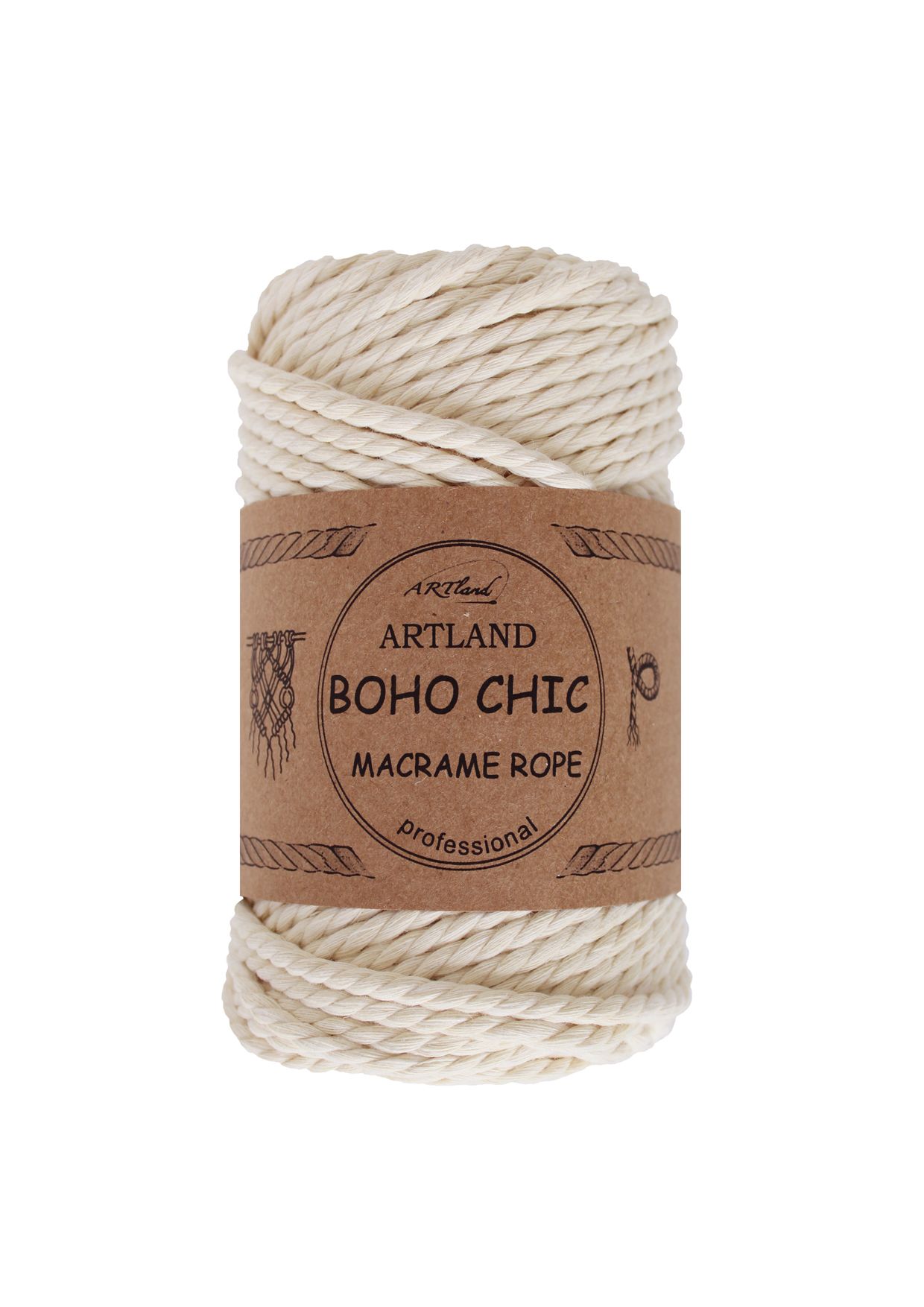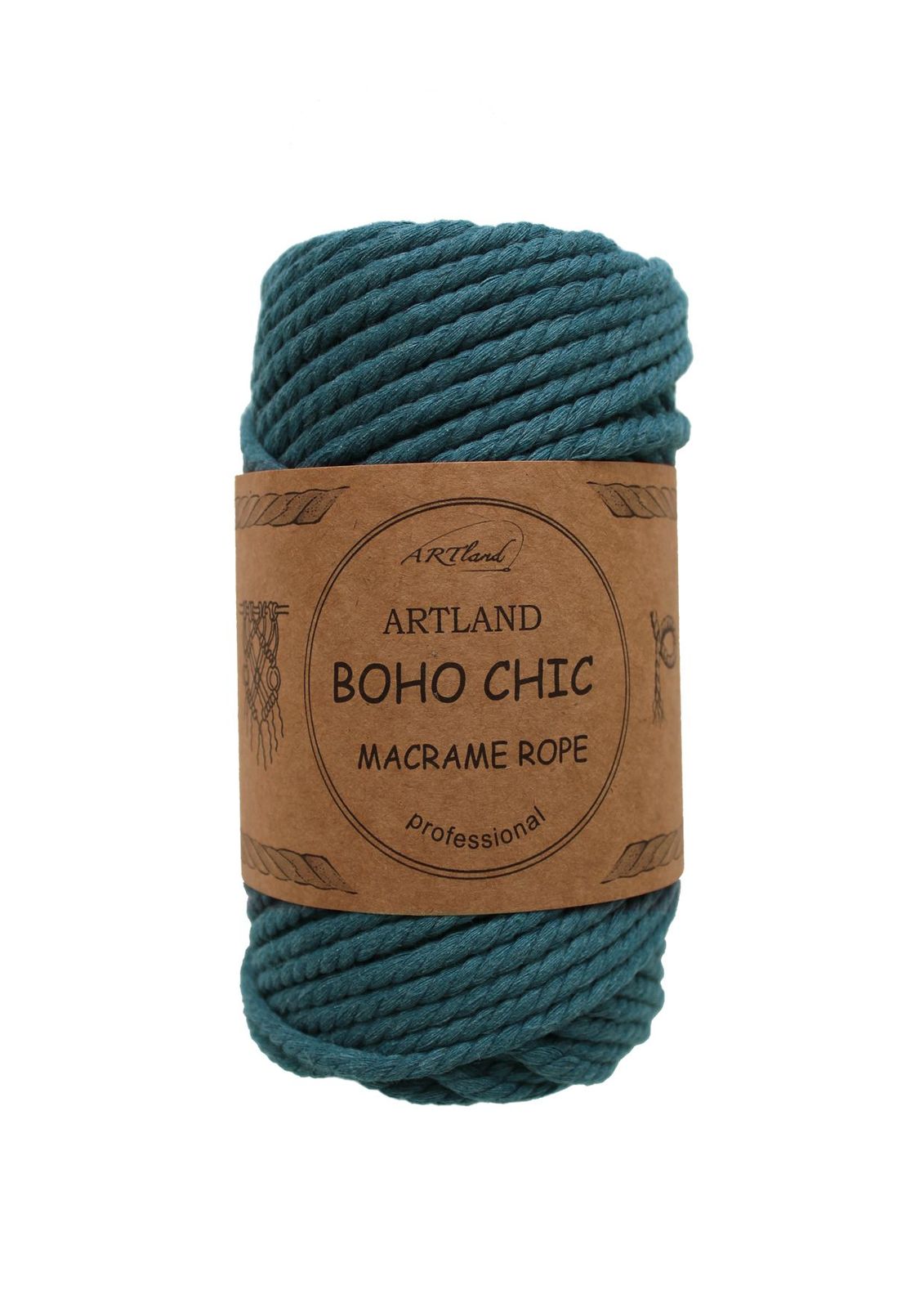 חוט מקרמה בוהו שיק BOHO CHIC של ארטלנד באיכות פרימיום ליצירה, כותנה, 4 מ"מ, 3 גידים , 250 גר