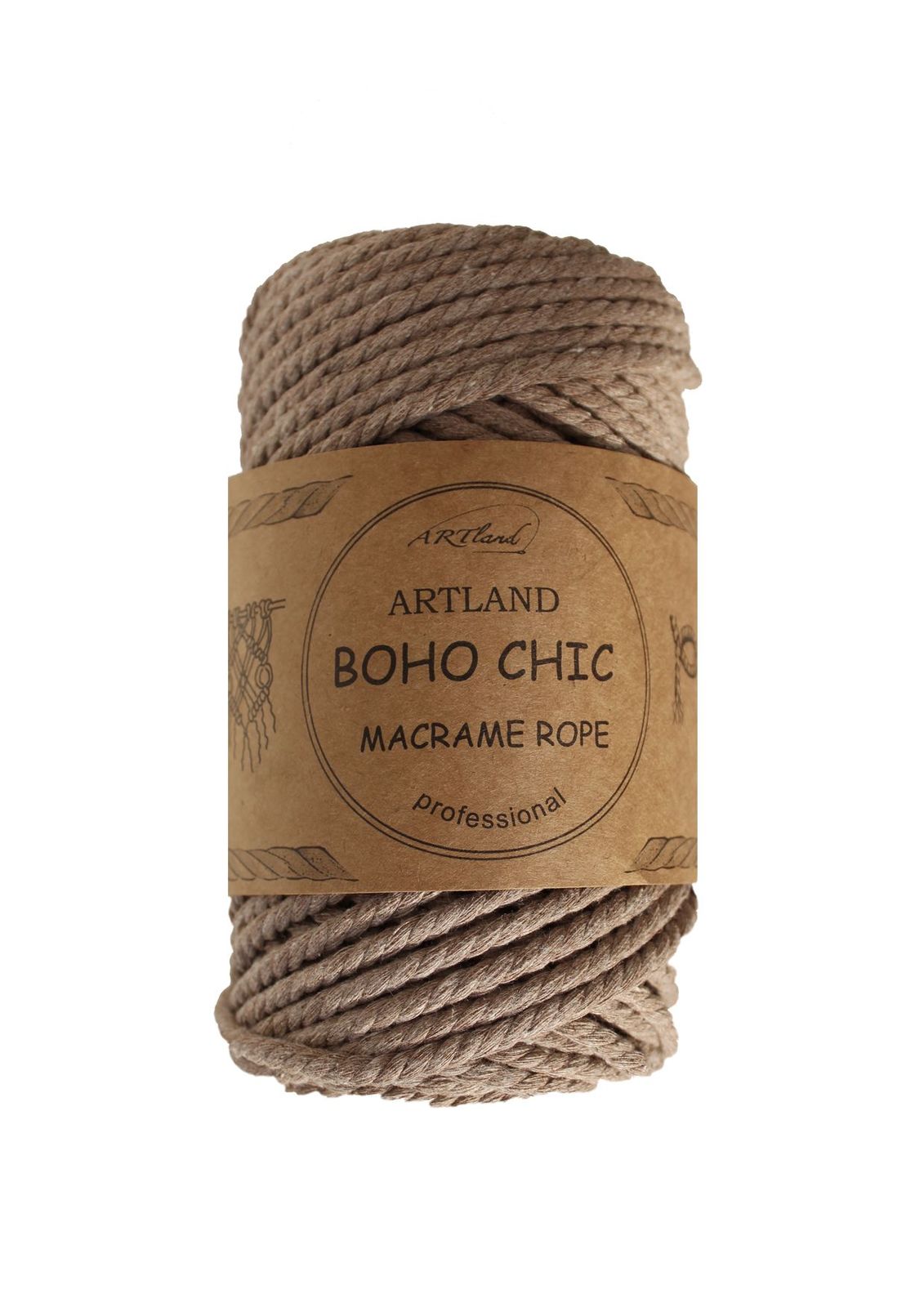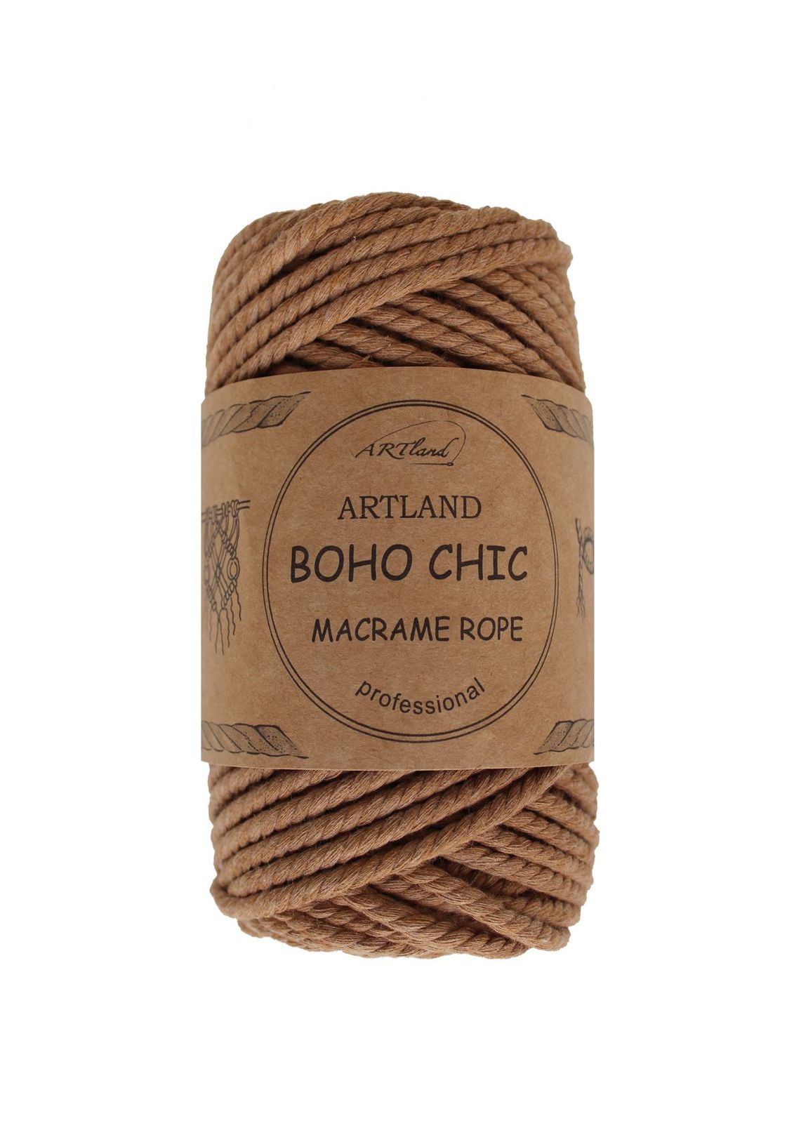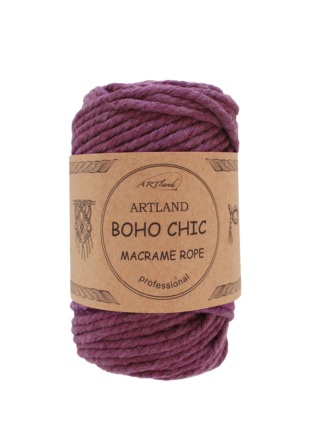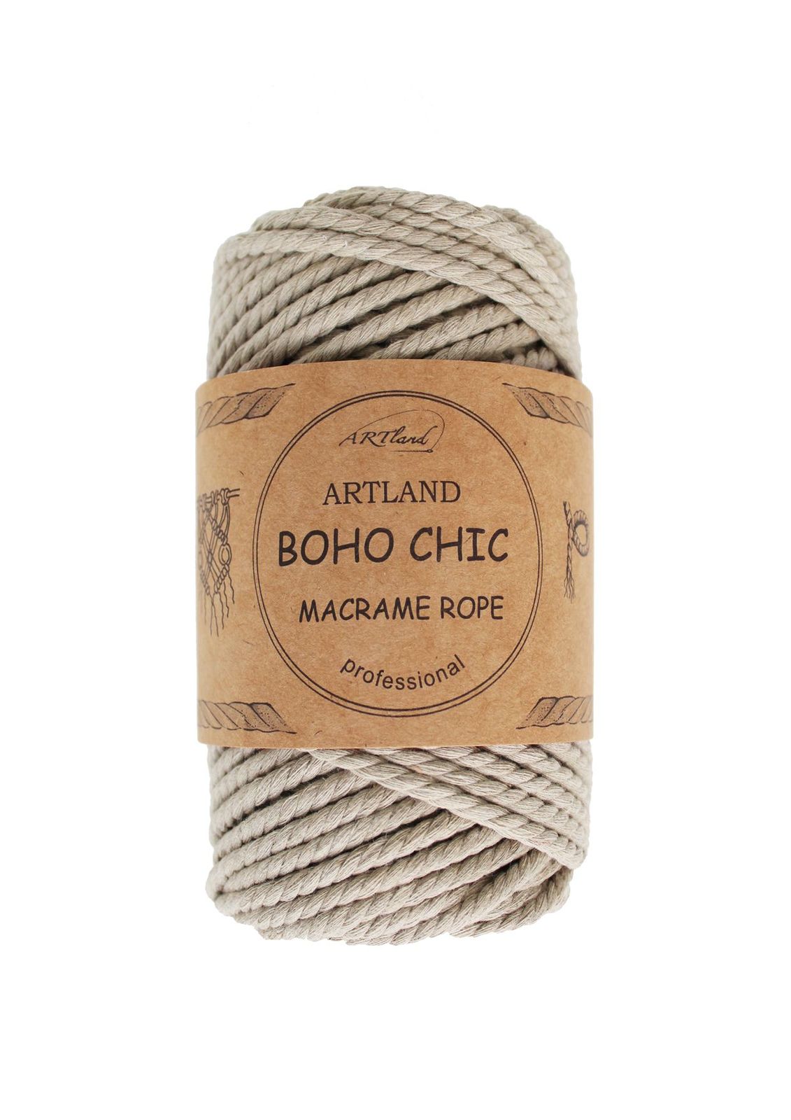חוט מקרמה בוהו שיק BOHO CHIC של ארטלנד באיכות פרימיום ליצירה, כותנה, 4 מ"מ, 3 גידים , 250 גר