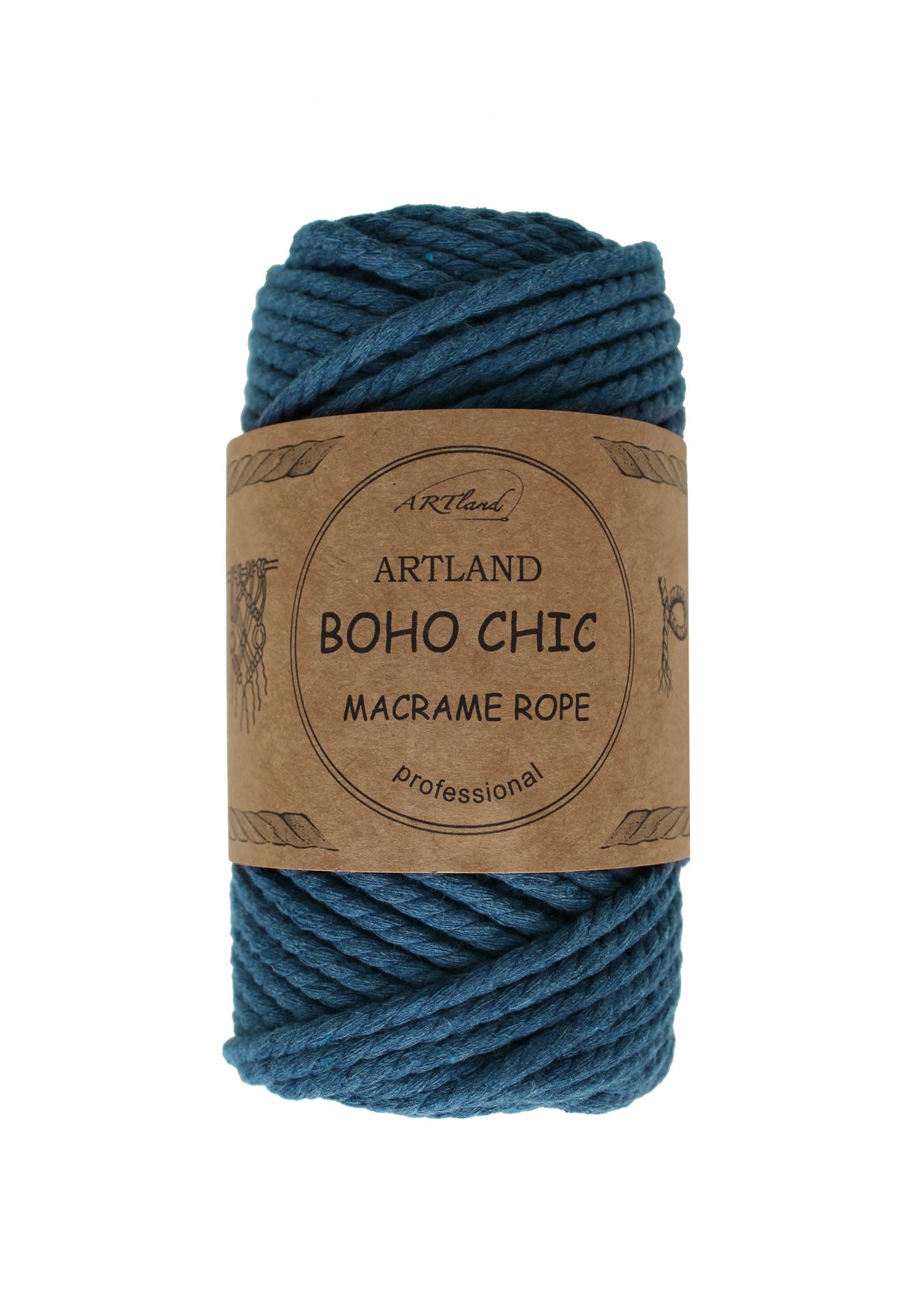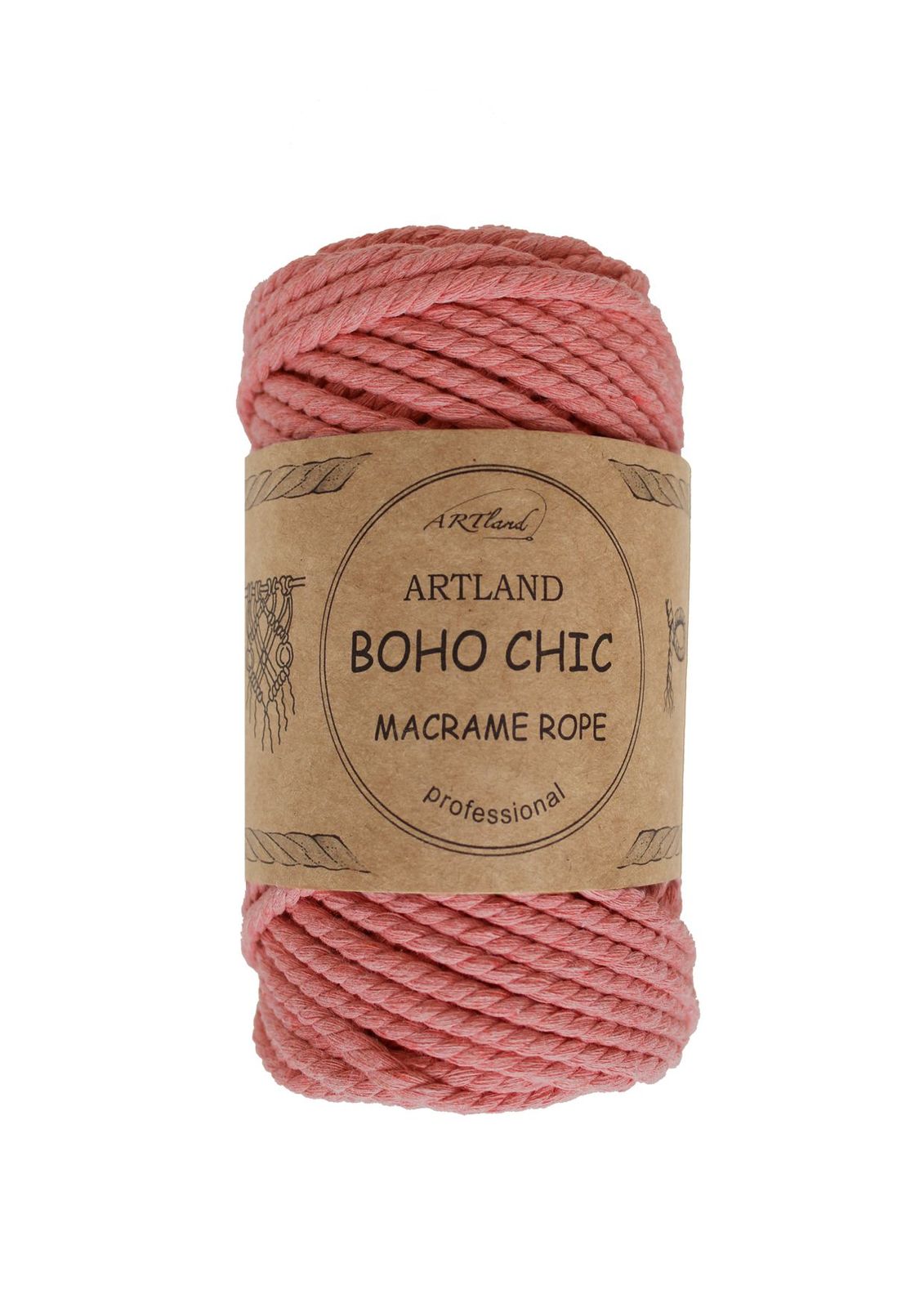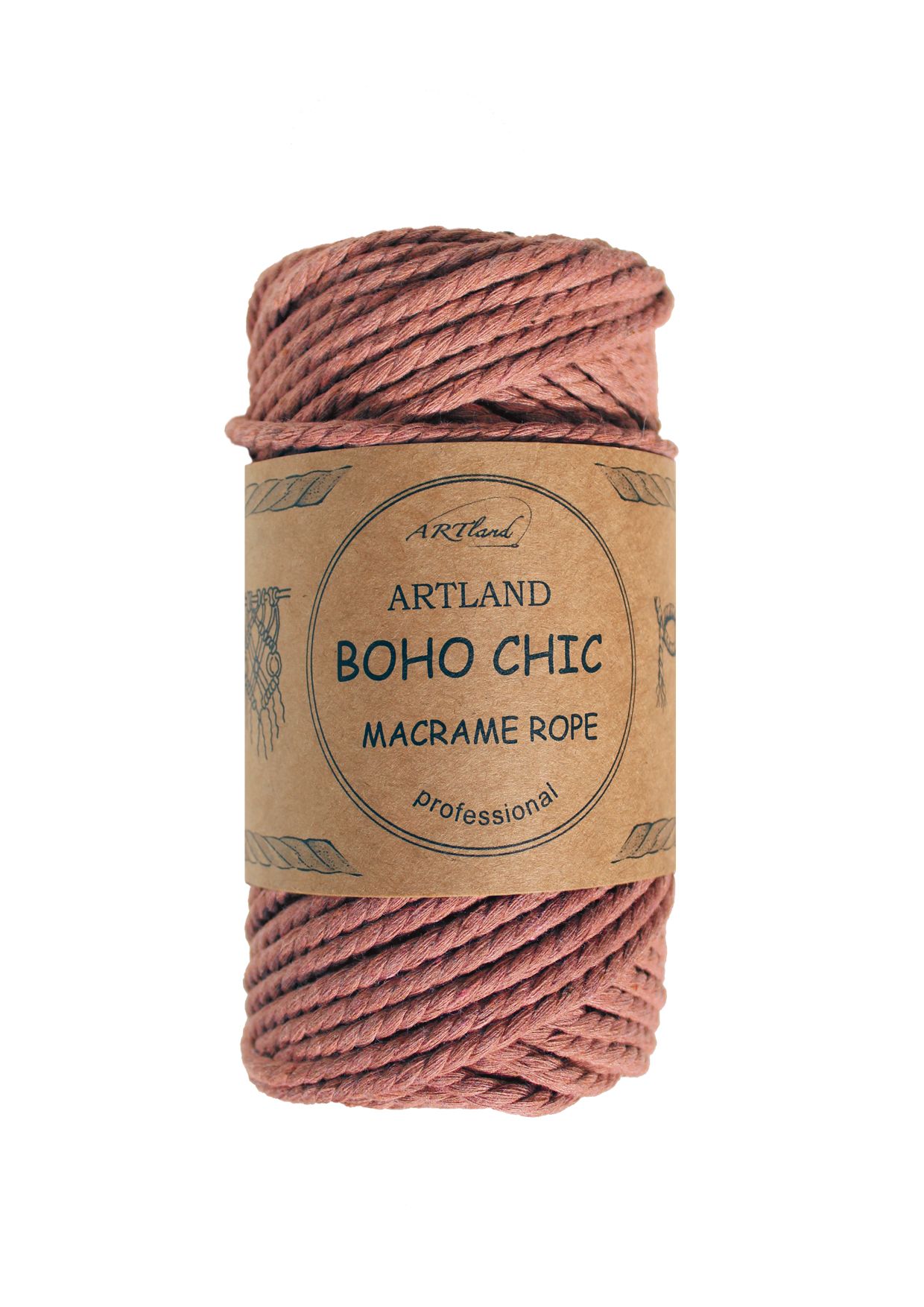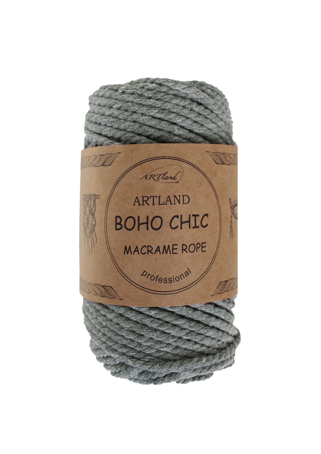 חוט מקרמה בוהו שיק BOHO CHIC של ארטלנד באיכות פרימיום ליצירה, כותנה, 4 מ"מ, 3 גידים , 250 גר