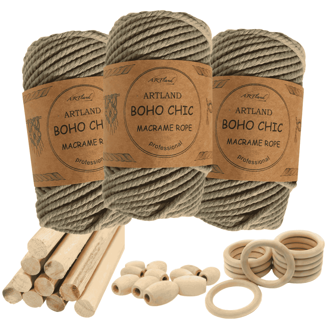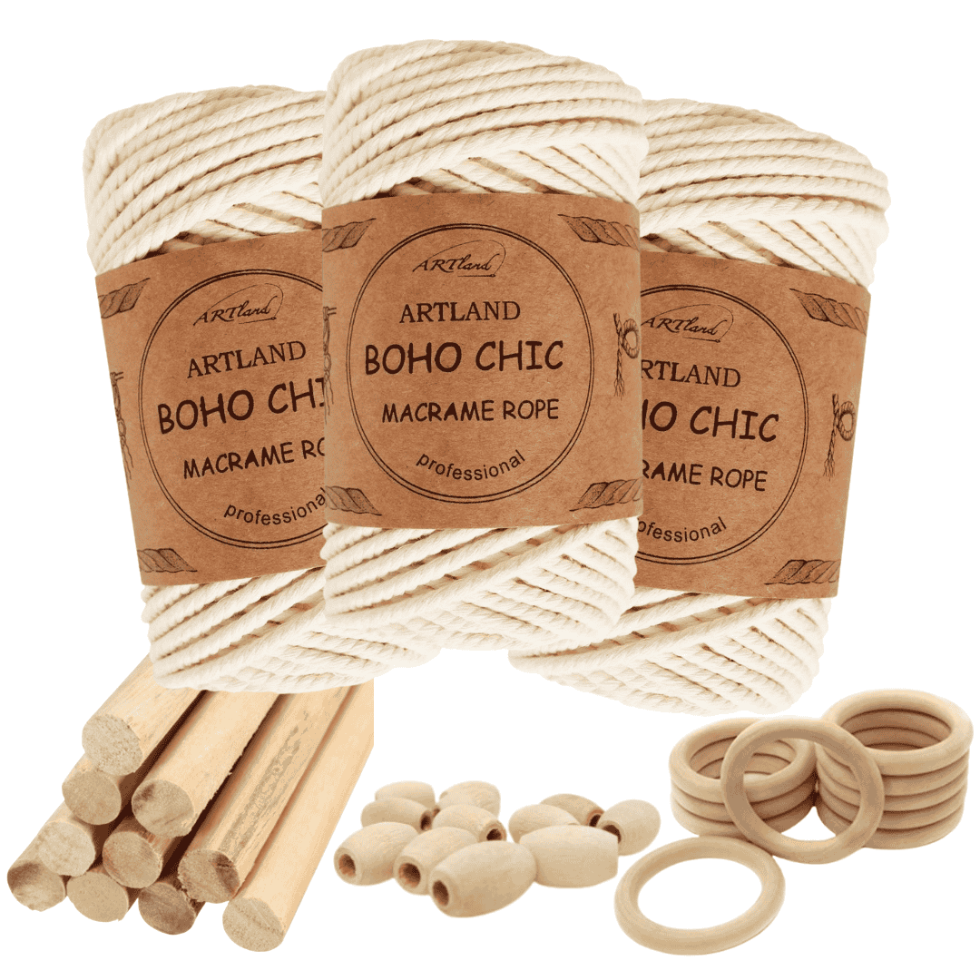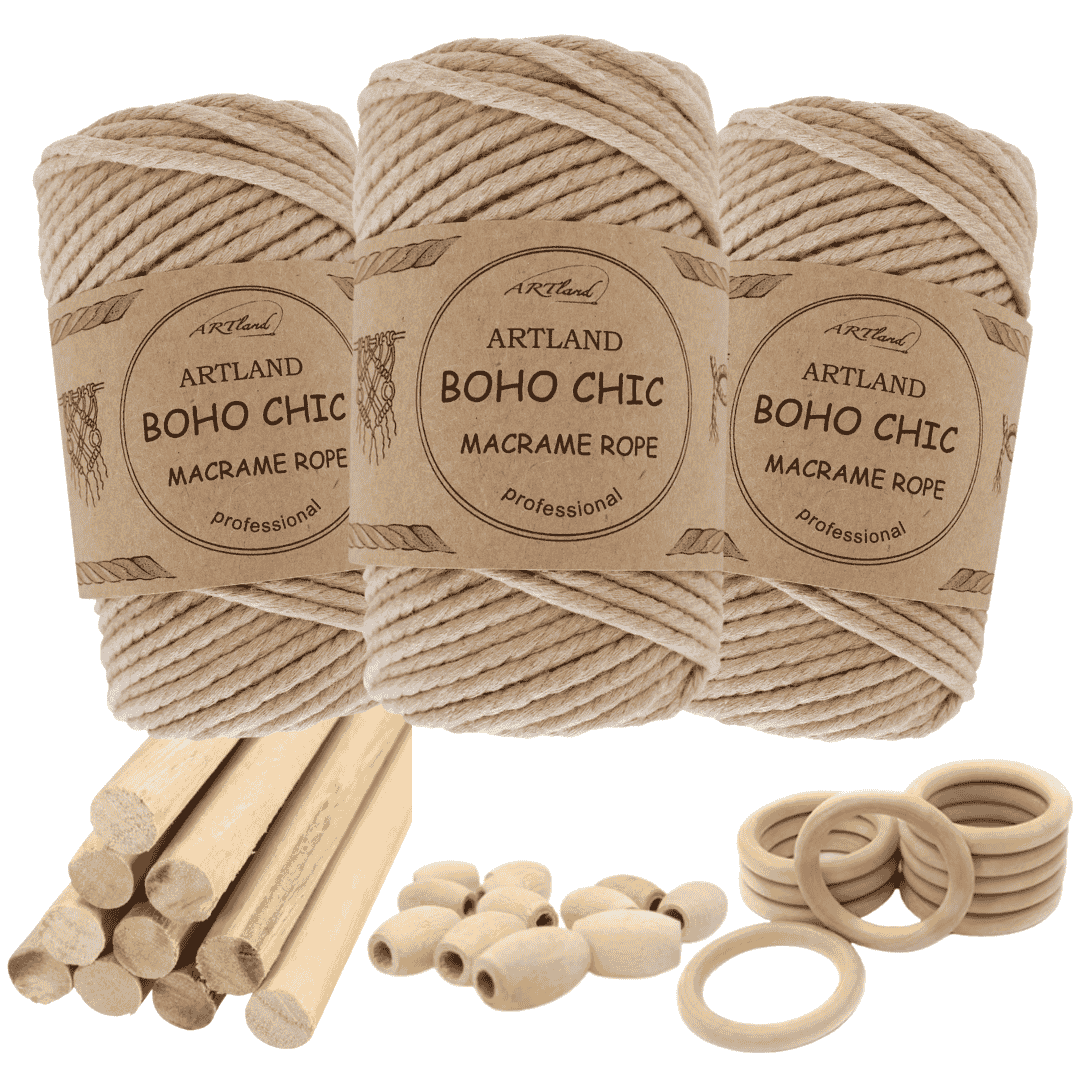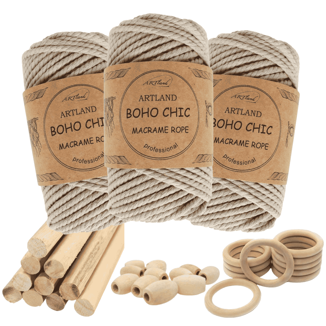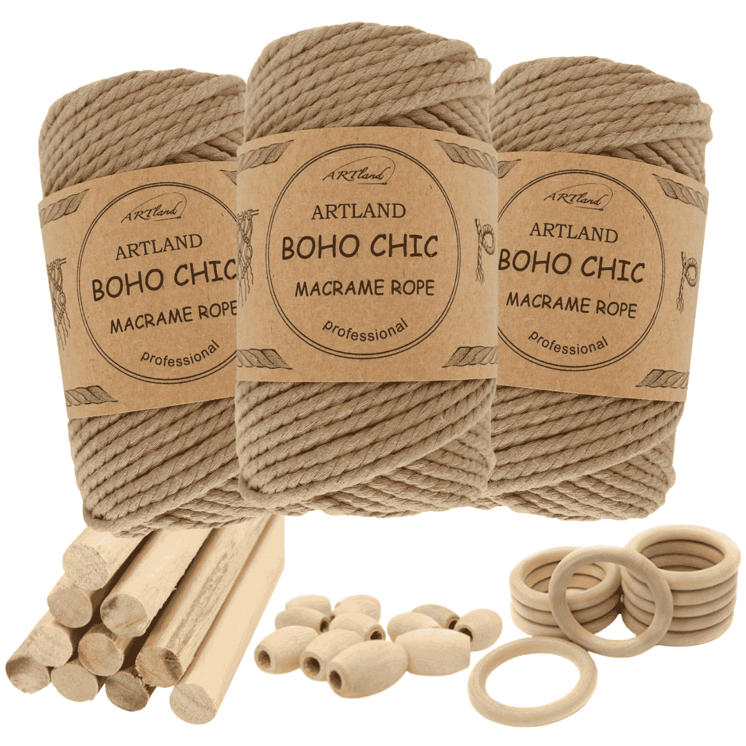 חוט מקרמה בוהו שיק המקורי של חברת ארטלנד עשוי חוט כותנה, שזור 3 גידים בעובי 4 מ"מ