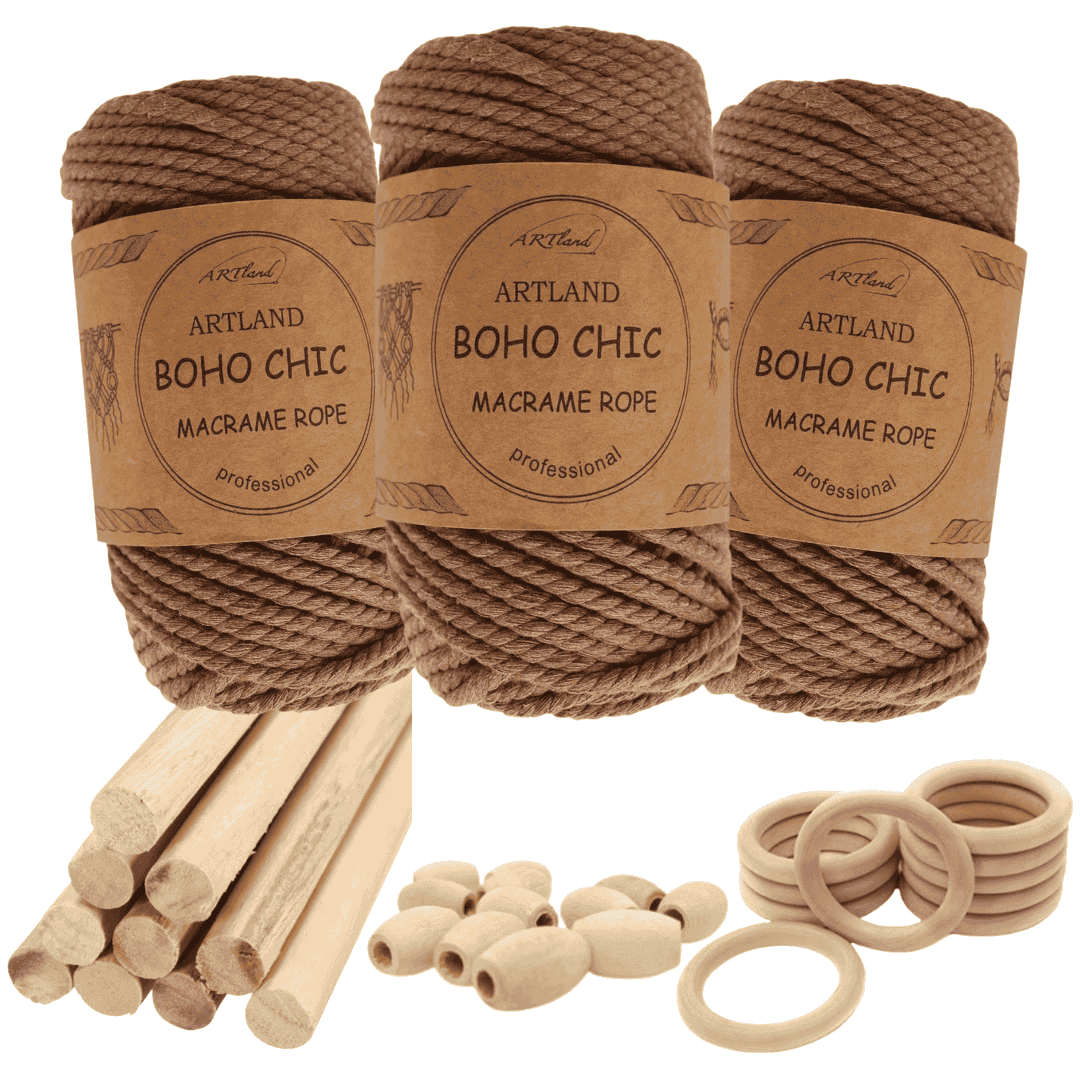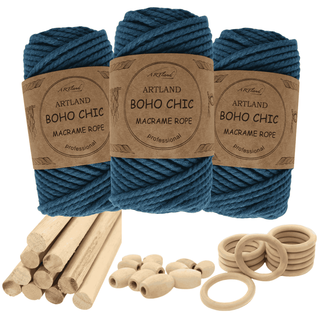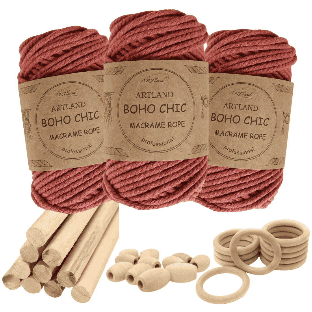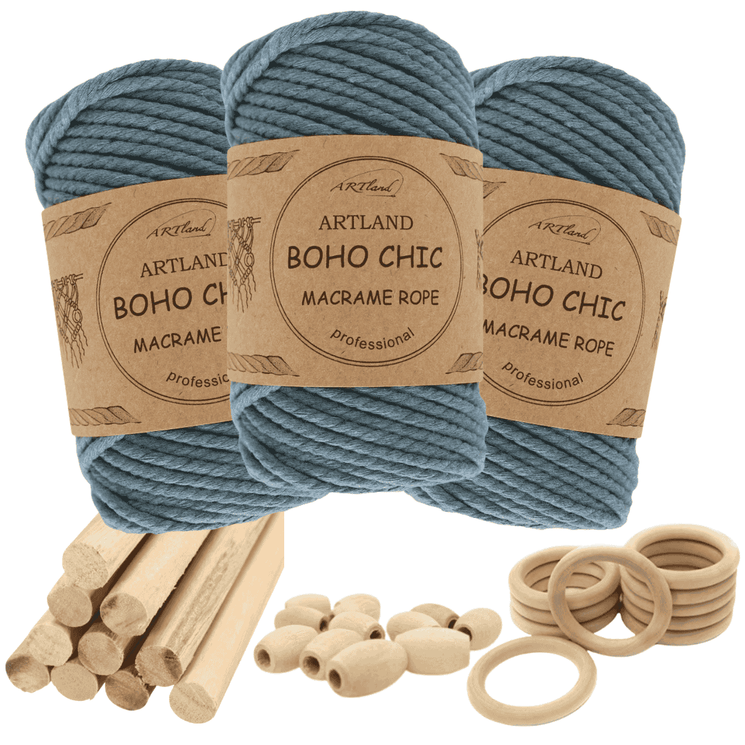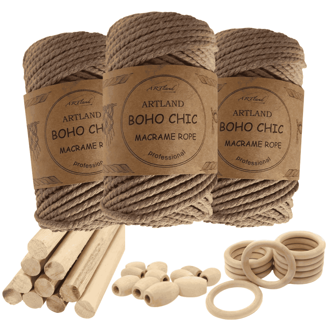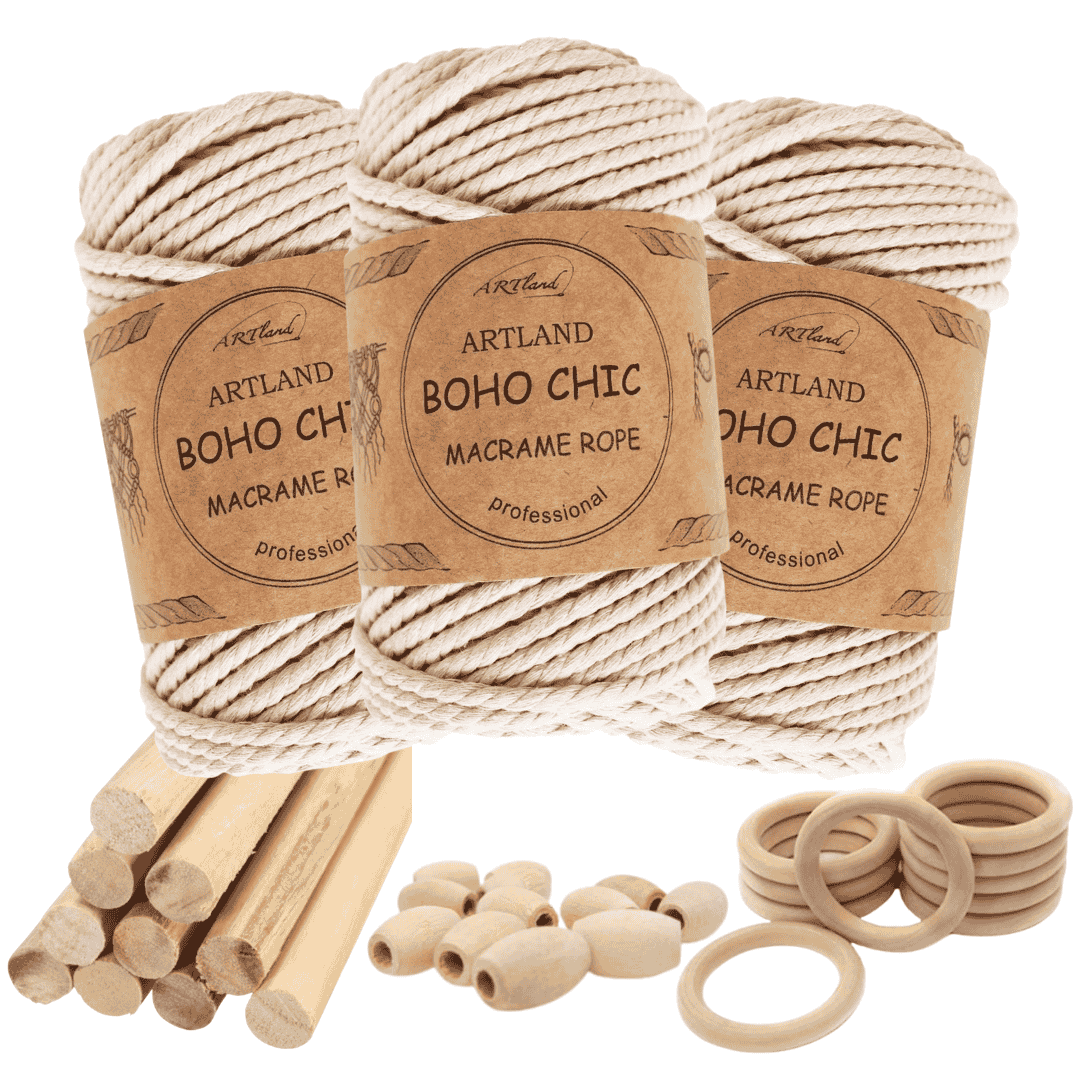 חוט מקרמה בוהו שיק המקורי של חברת ארטלנד עשוי חוט כותנה, שזור 3 גידים בעובי 4 מ"מ