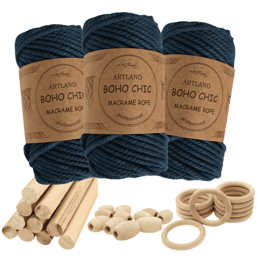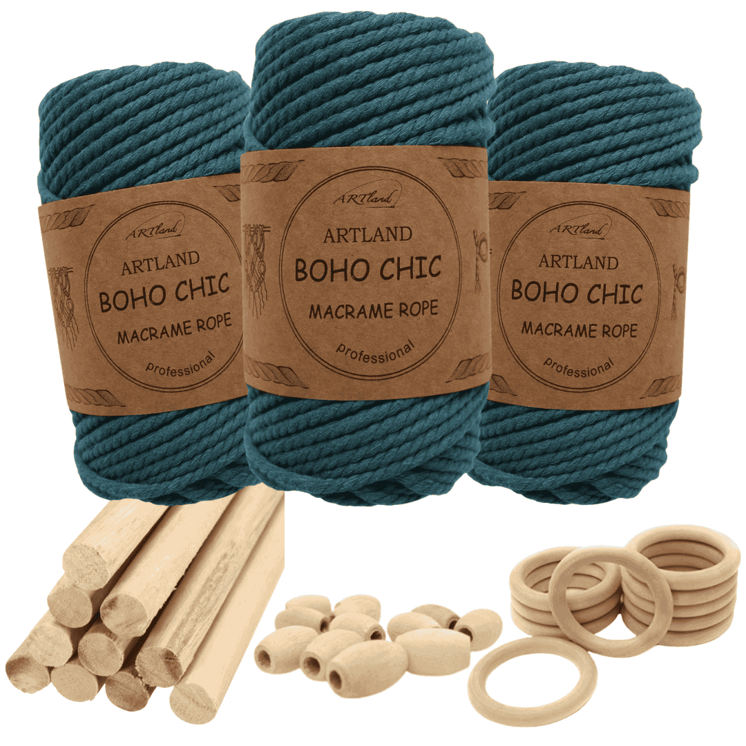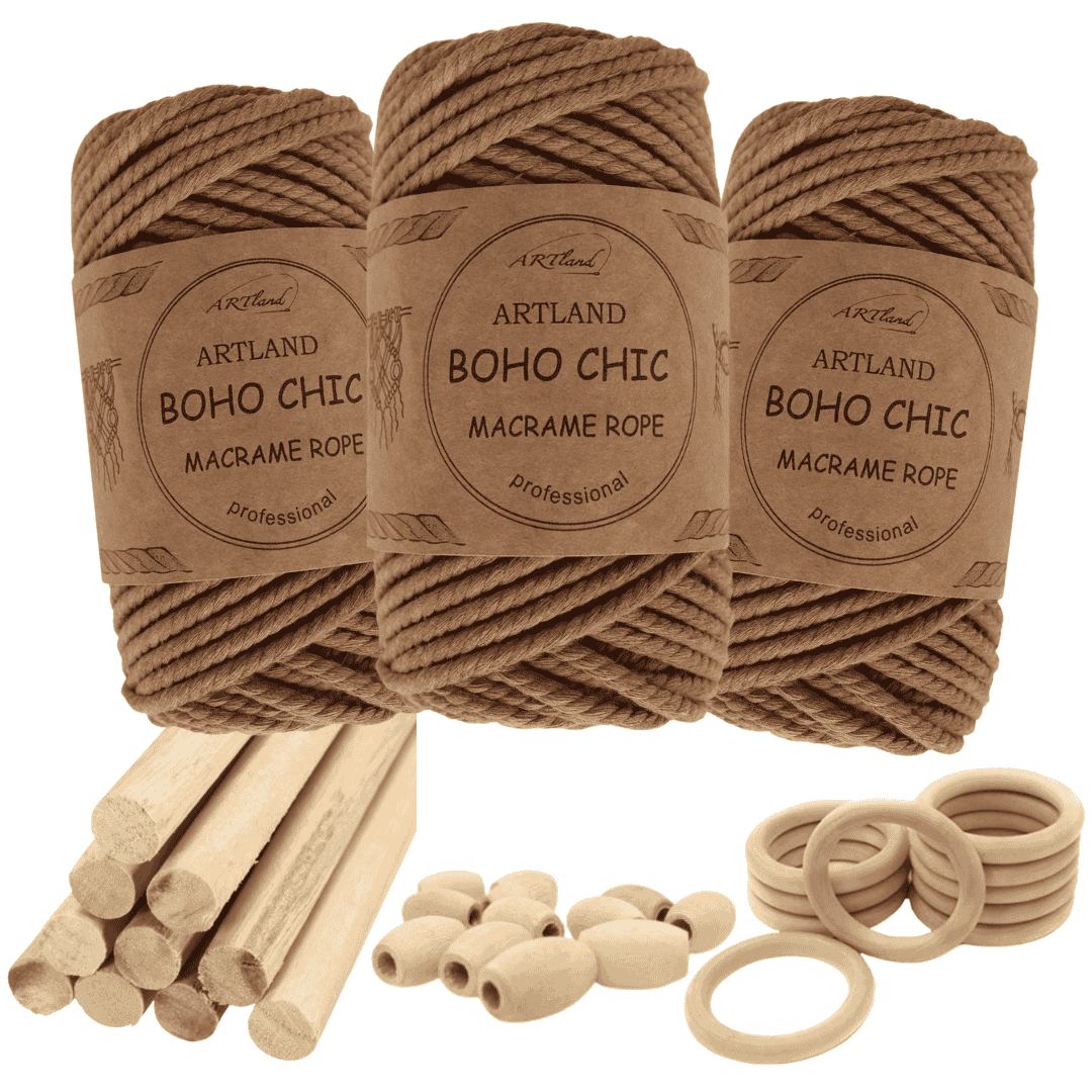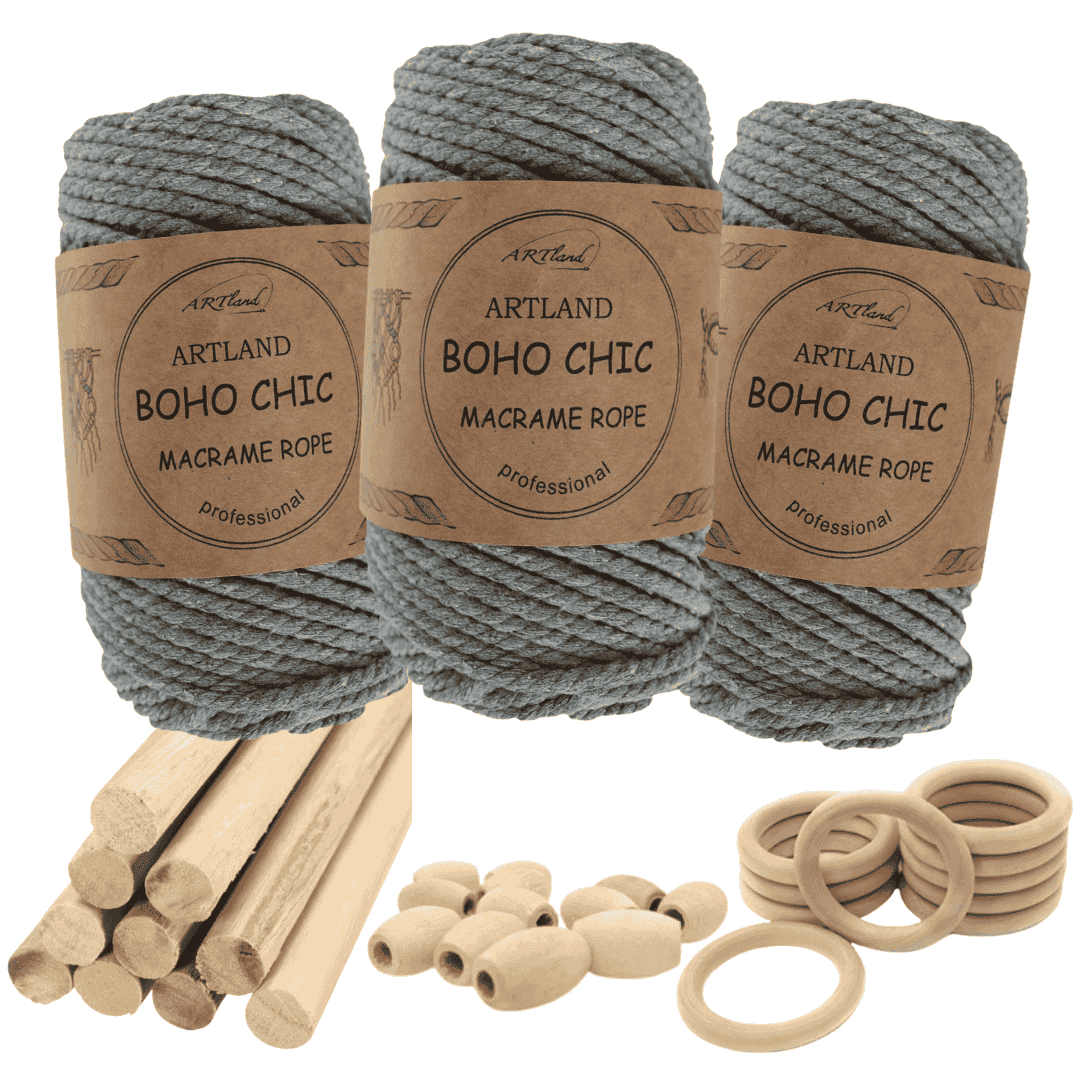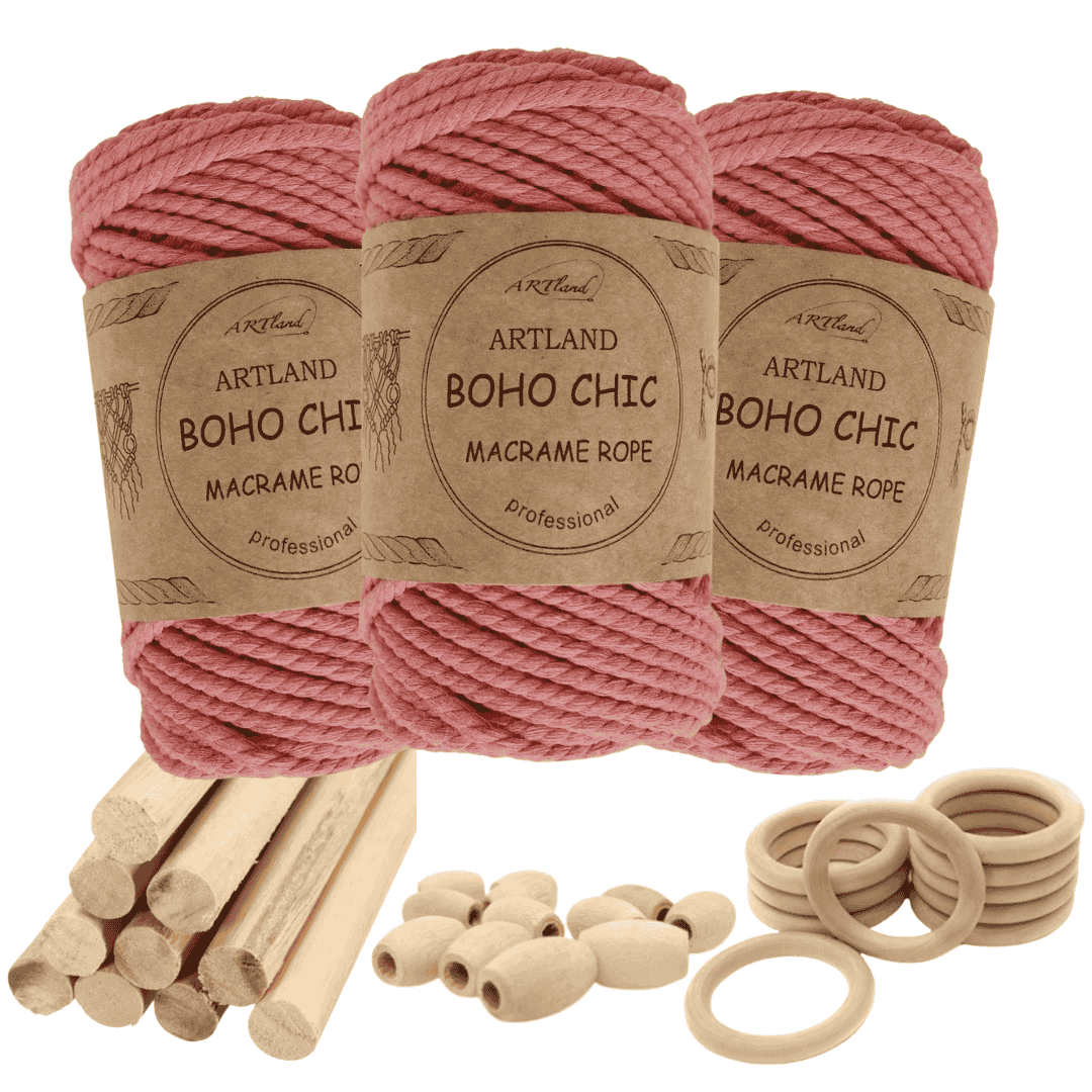 חוט מקרמה בוהו שיק המקורי של חברת ארטלנד עשוי חוט כותנה, שזור 3 גידים בעובי 4 מ"מ